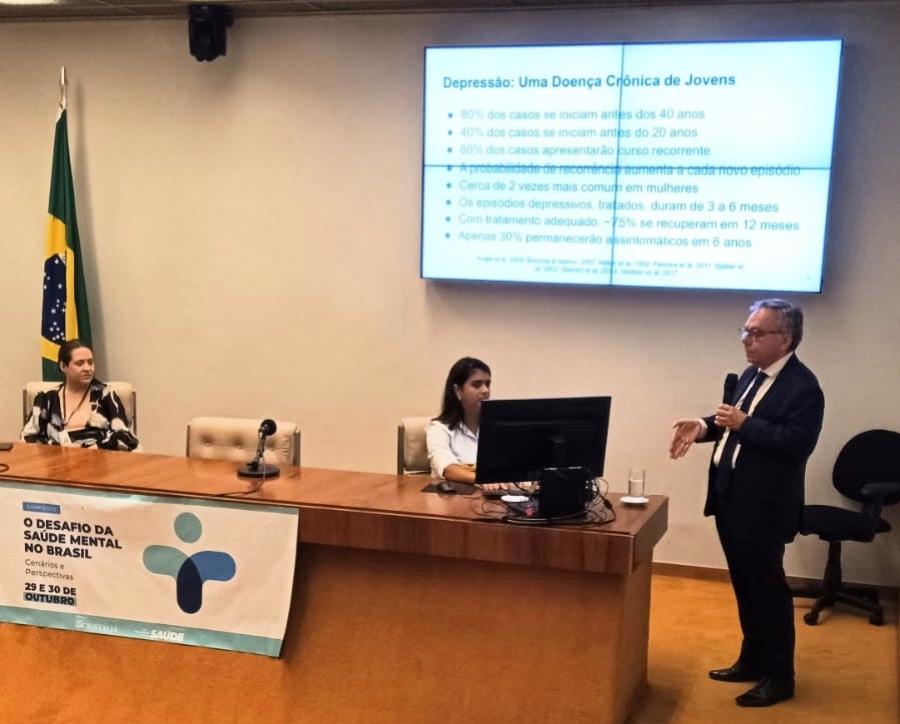 A saúde mental no Brasil tem causado grande preocupação e um alerta ao governo. Por meio do simpósio “O Desafio da Saúde Mental no Brasil: Cenários e Perspectivas”, a Frente Parlamentar de Saúde, com a presença do Ministério da Saúde, e o Cuida Brasil, o primeiro “think tank” para a saúde pública e o cuidado farmacêutico, estimularam discussões sobre saúde mental, com objetivo de enfatizar a importância do acesso ao tratamento das doenças do gênero no Sistema Único de Saúde (SUS). Como um dos apoiadores, o Laboratório Cristália indicou o palestrante Dr. Acioly Lacerda, psiquiatra e professor livre-docente da Universidade Federal de São Paulo (Unifesp), para um dos painéis do evento, ocorrido entre os dias 29 e 30 de outubro, no Interlegis, em Brasília (DF).